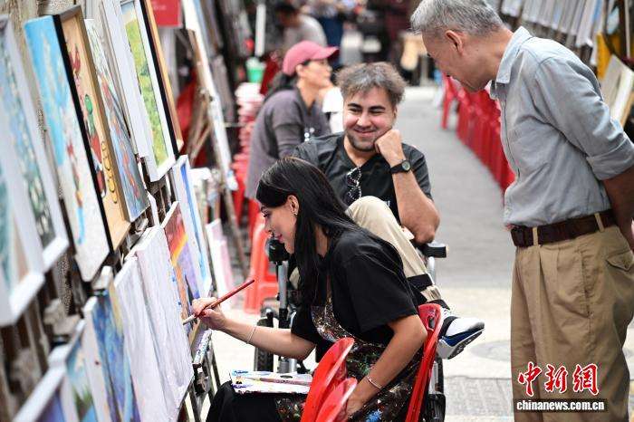 12月11日,游客在大芬油画村游览。