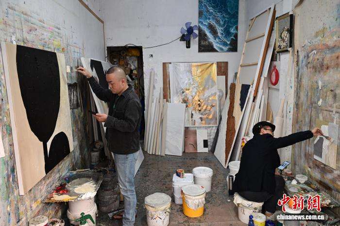 12月11日,一名画工在大芬油画村画油画。(图片来源:本文图片均来自中新网)