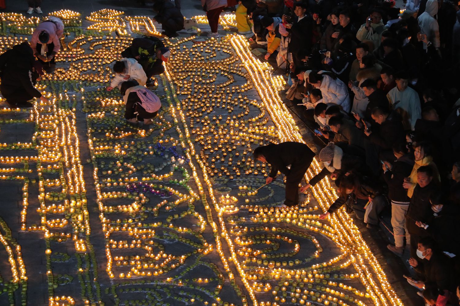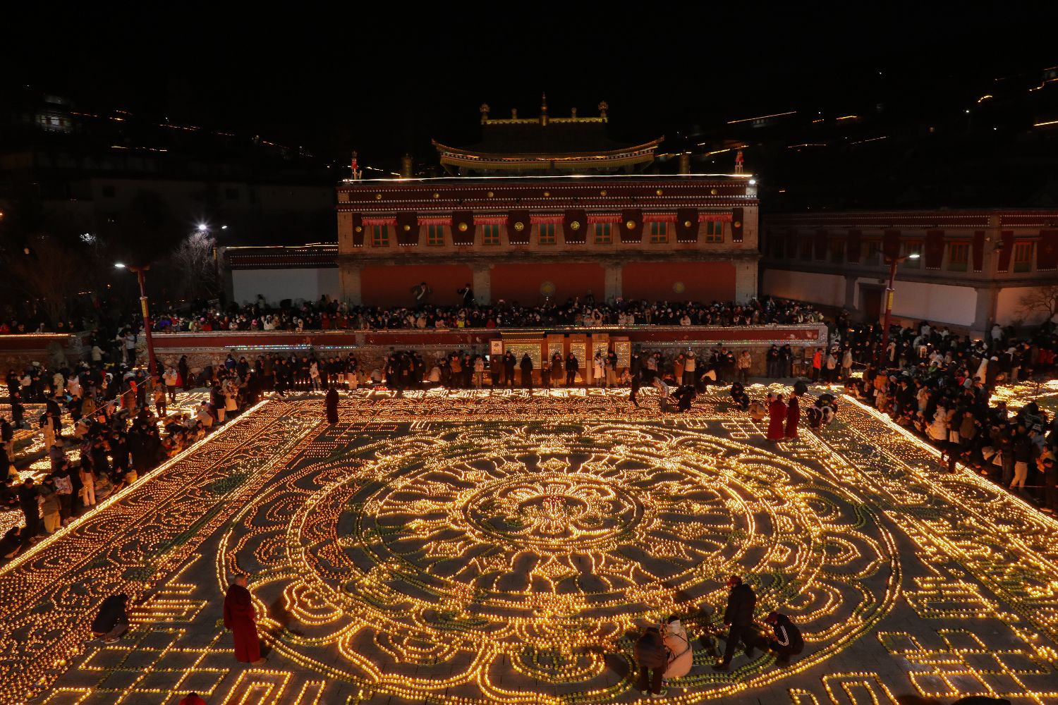 12月14日晚,信众在塔尔寺燃灯祈福。