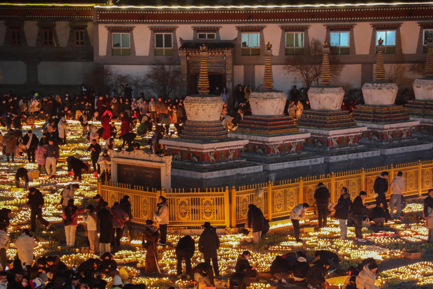 12月14日晚,在青海西宁,信众在塔尔寺燃灯祈福。