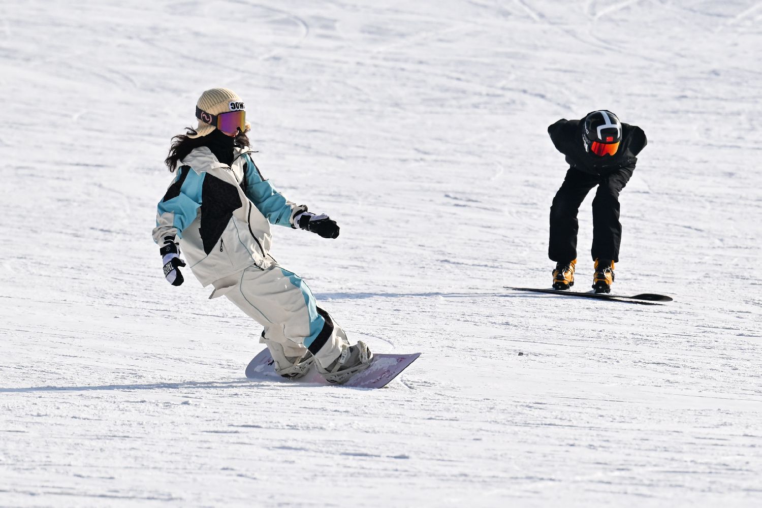 12月14日,爱好者在马鬃山滑雪场滑雪。