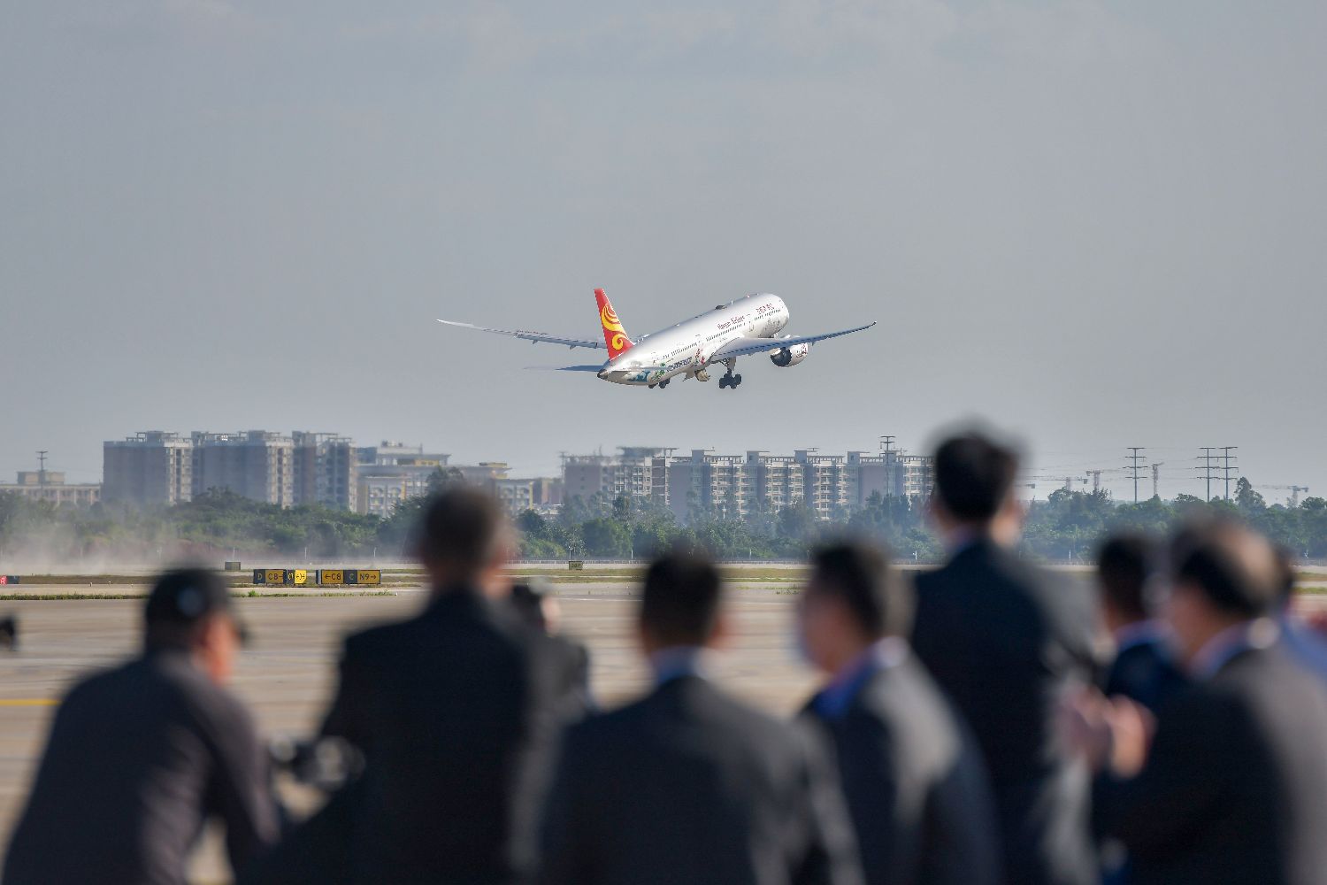 资料图为2021年12月2日,海口美兰国际机场二期投运后的首个出港航班顺利起飞。这意味着作为海南自贸港建设重大标志性工程的海口美兰国际机场二期扩建项目投入运营,实现机场双航站楼、双跑道运行模式。