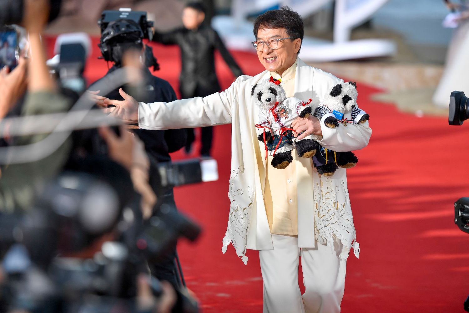 资料图为2018年12月16日,电影节形象大使成龙亮相红毯仪式,首届海南岛国际电影节闭幕式红毯在三亚举行。