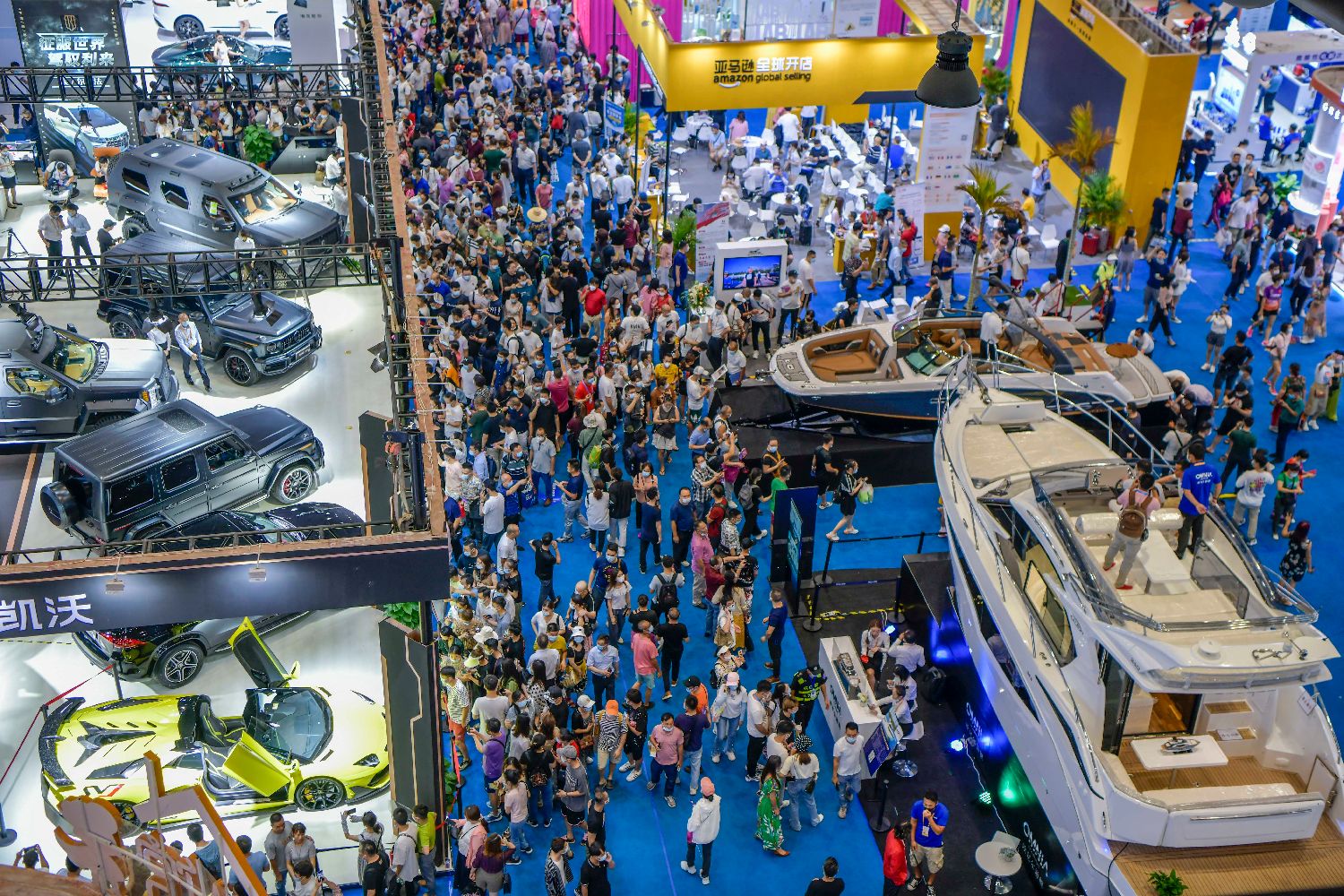 资料图为2021年5月10日,民众在海口参观首届中国国际消费品博览会的游艇、汽车展区。