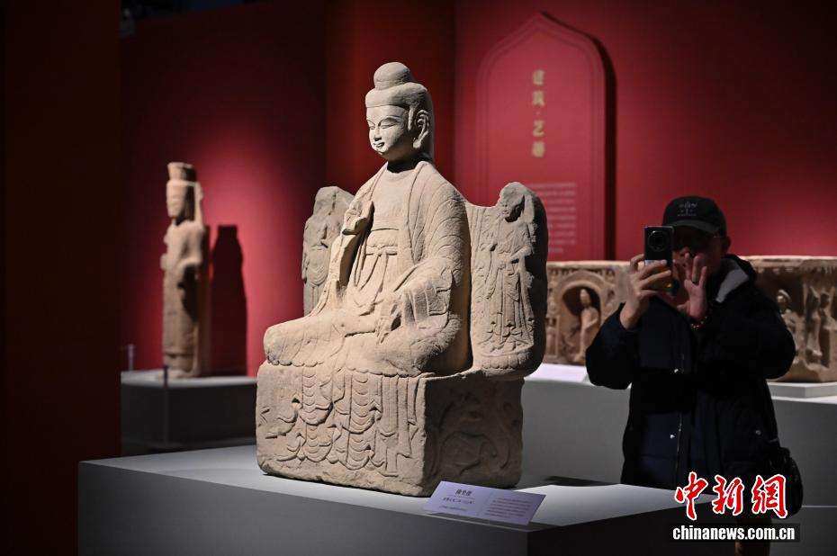 12月16日,民众参观北魏正光二年(521年)的南涅水石刻——佛坐像。(图片来源:中新网)