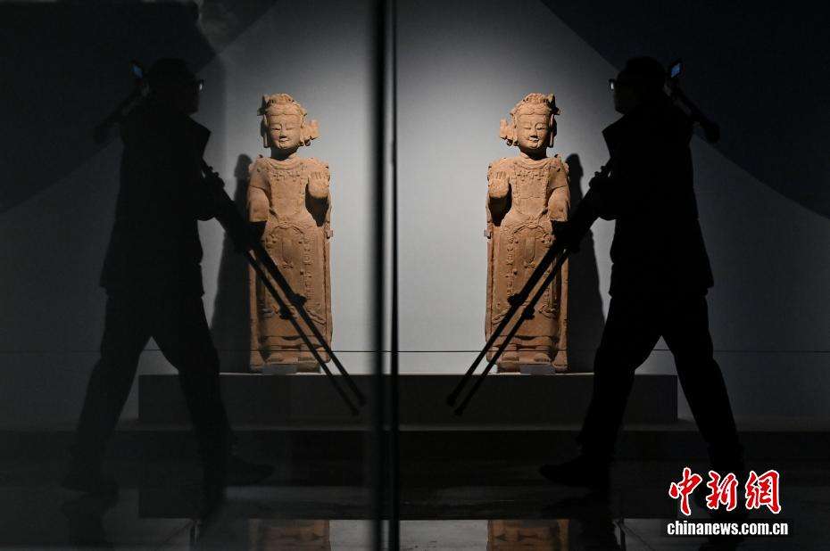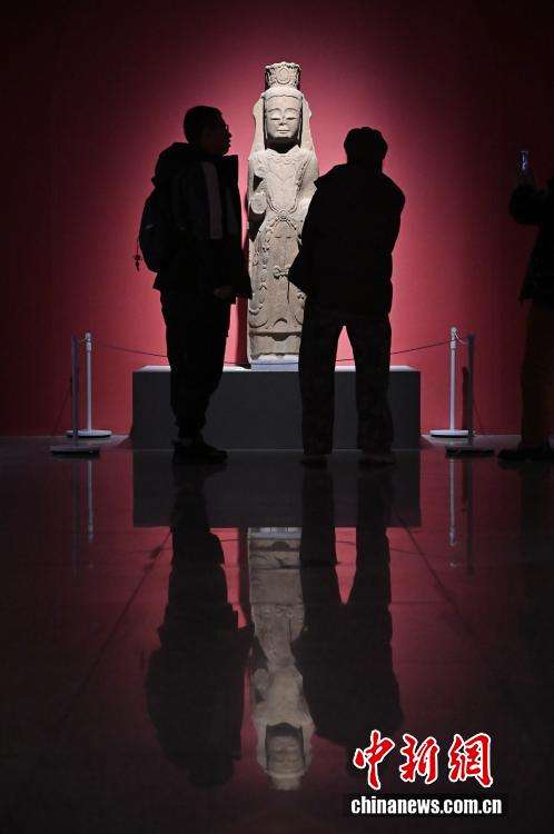 12月16日,民众参观北齐南涅水石刻——菩萨立像。(图片来源:中新网)