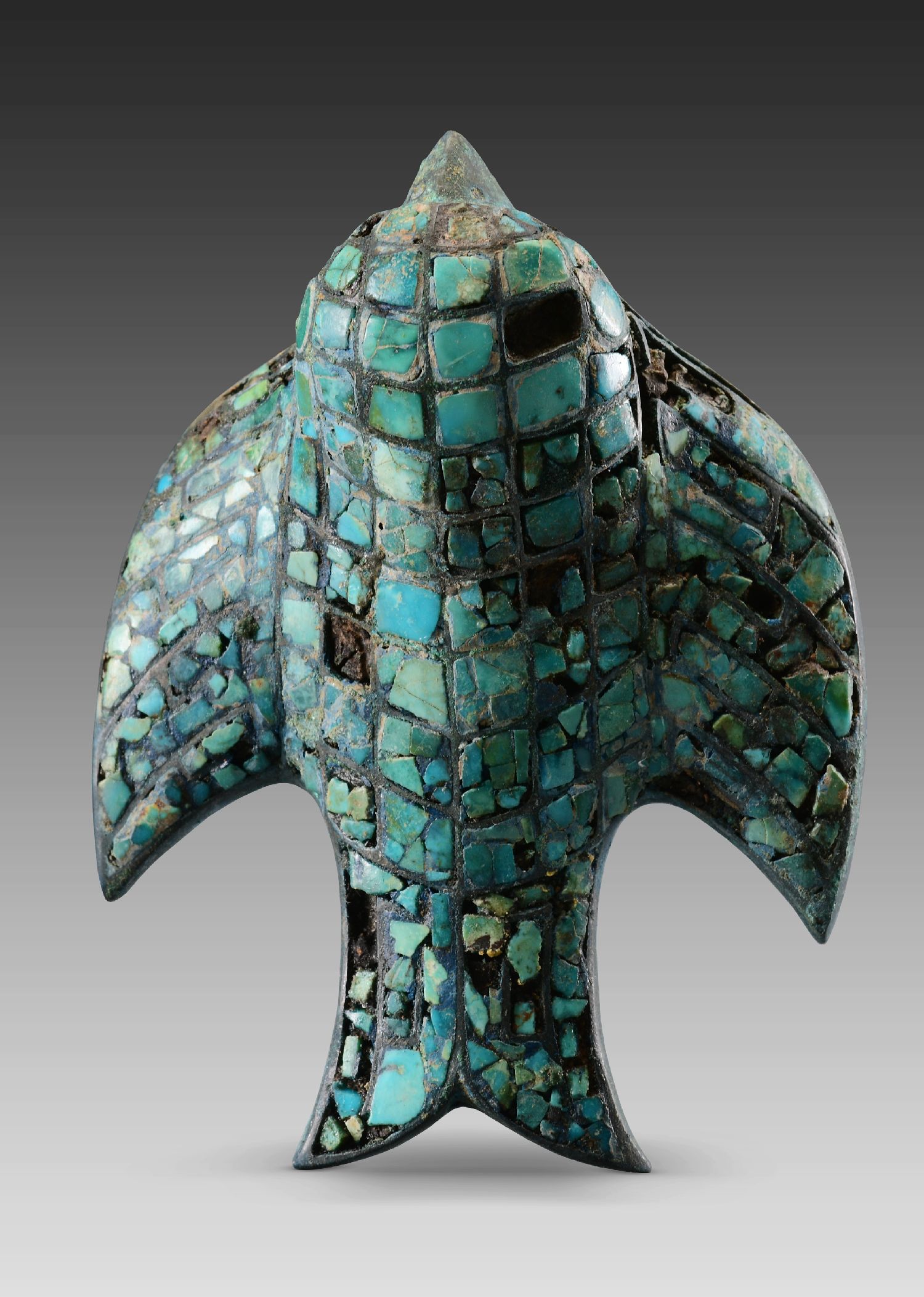 陕西清涧后刘家塔墓地出土的镶绿松石铜饰(资料照片)。