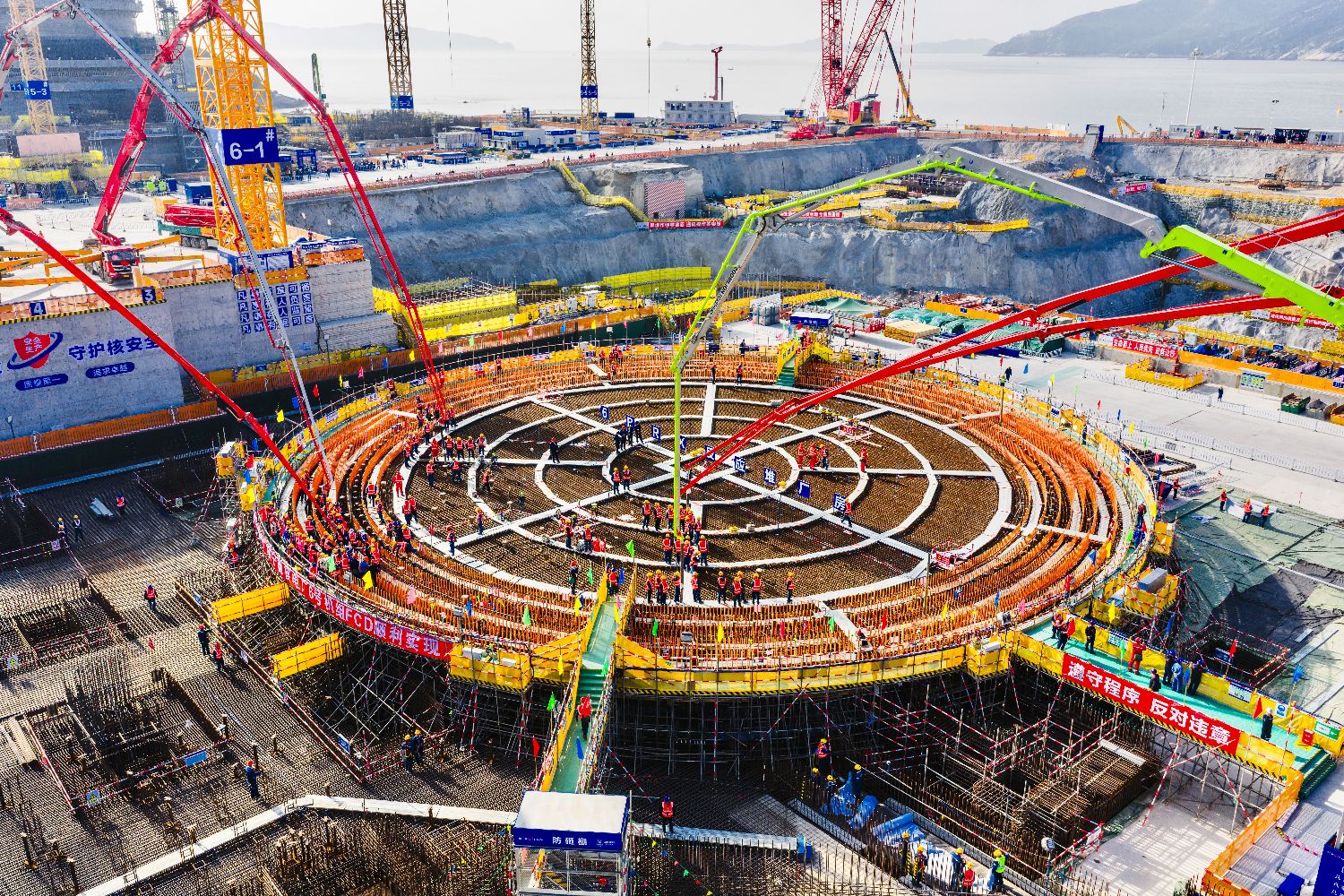 12月16日,中广核福建宁德核电站6号机组完成核岛第一罐混凝土浇筑(FCD),标志着该机组主体工程正式开工。(图片来源:中新社发/福建宁德核电有限公司供图)