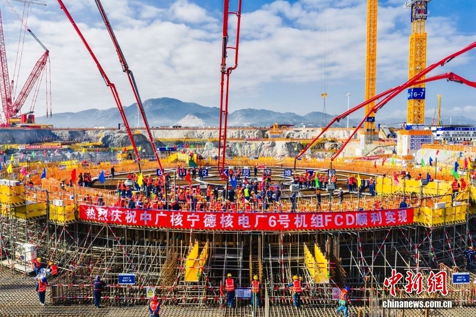 12月16日,中广核福建宁德核电站6号机组完成核岛第一罐混凝土浇筑(FCD),标志着该机组主体工程正式开工。