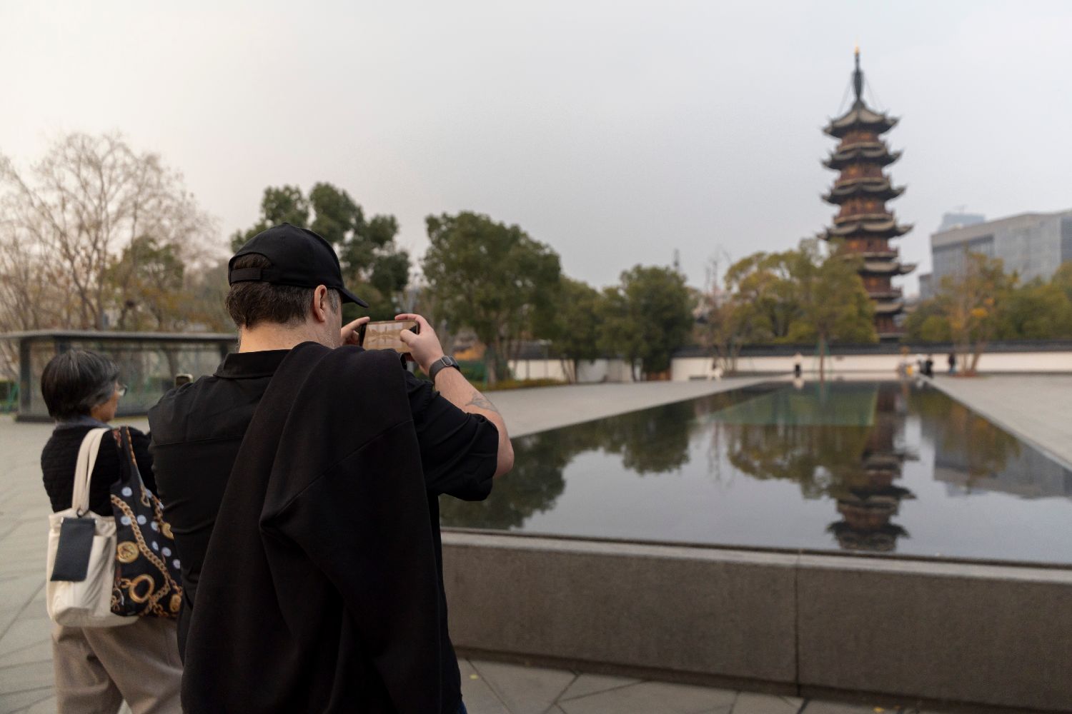 12月17日,外国网络文学作家拍摄龙华塔。