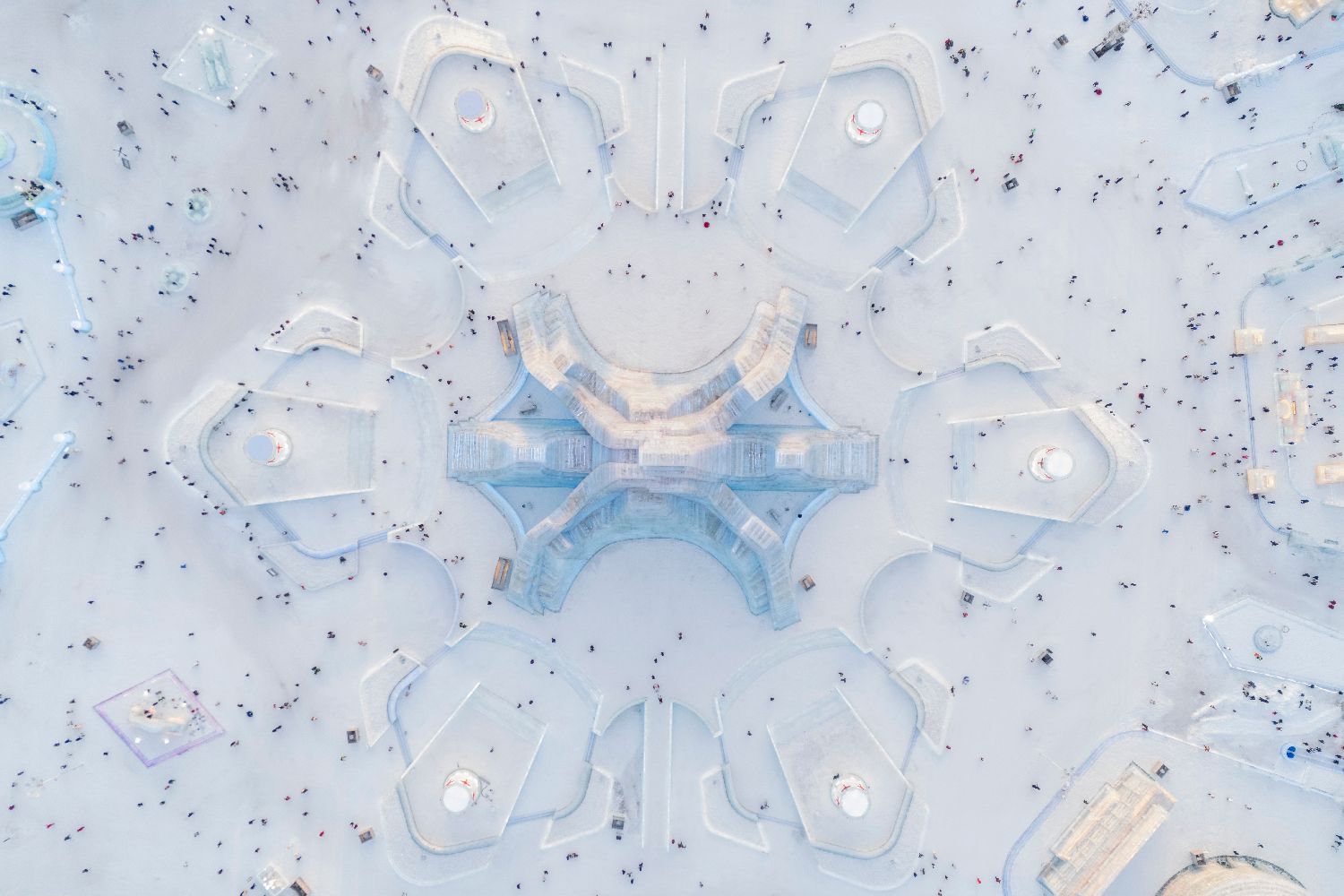 12月17日,游客在哈尔滨冰雪大世界园区游玩(无人机照片)。(图片来源:本文图片均据新华社)