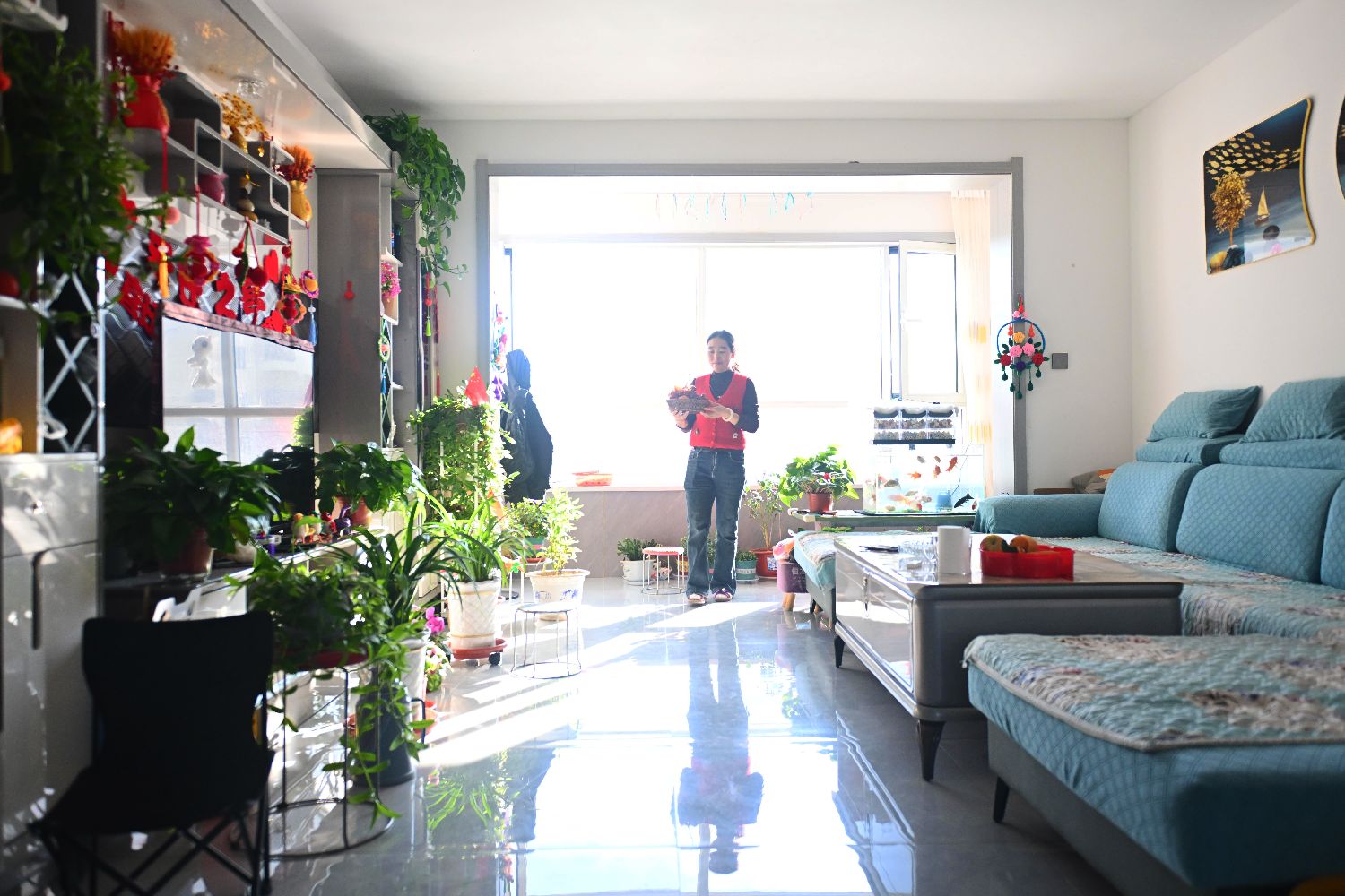 12月17日,灾后恢复重建的朝阳社区居民家中,居民享受新生活。