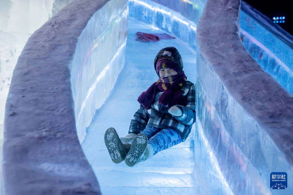 12月20日,一名儿童在“冰雪芳华”主题乐园内玩耍。