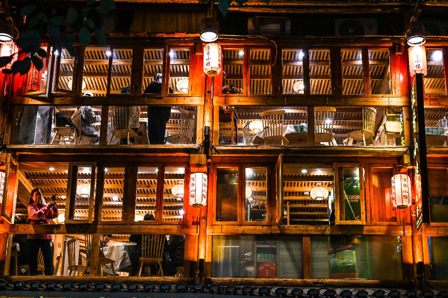 游客在贵州省黎平县肇兴侗寨一家餐厅就餐。