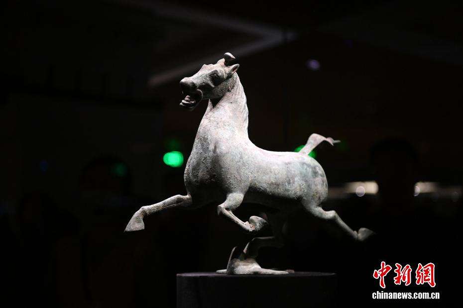 12月24日,在位于兰州的甘肃省博物馆丝绸之路文明展厅内展出的铜奔马。