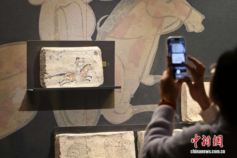 12月24日,在位于兰州的甘肃省博物馆丝绸之路文明展厅内,游客参观魏晋画像砖“邮驿图”。