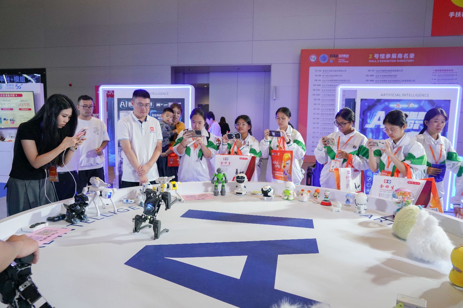 10月23日,在广东汕头举行的第24届汕头·澄海国际玩具礼品博览会上,观众在AI展区观看机器狗玩具表演。