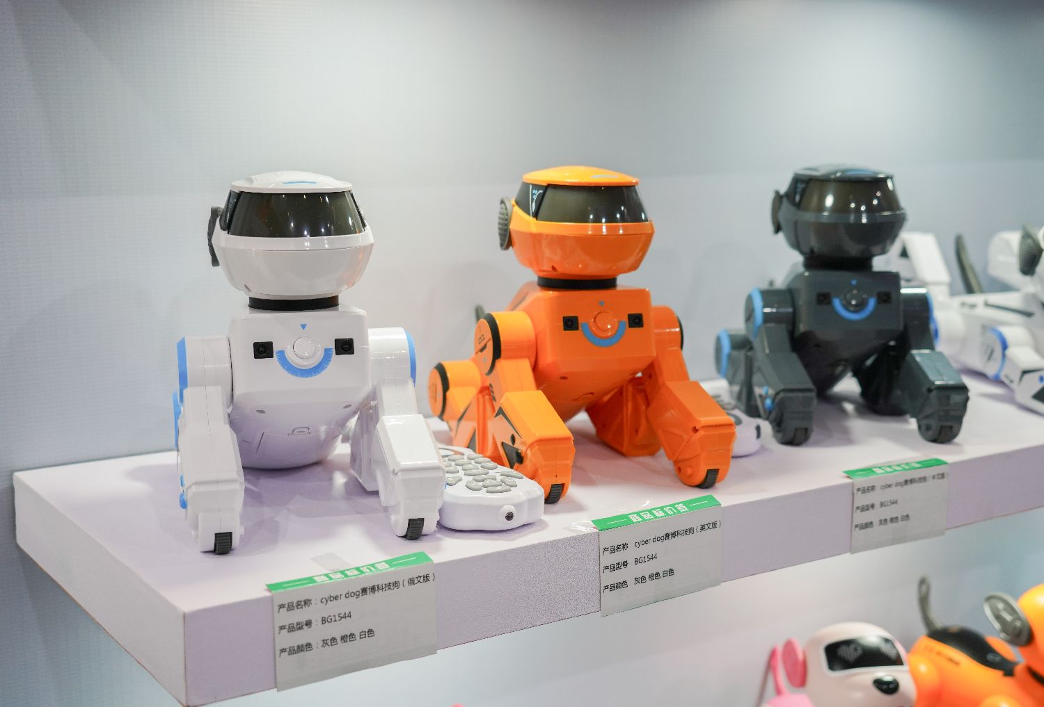 10月23日在广东汕头举行的第24届汕头·澄海国际玩具礼品博览会上拍摄的AI玩具狗。