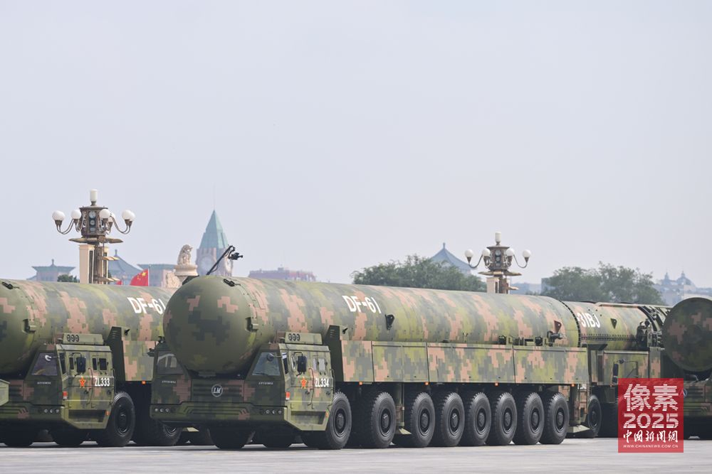 纪念中国人民抗日战争暨世界反法西斯战争胜利80周年阅兵活动9月3日在北京天安门广场举行,全球媒体高度关注,参阅武器装备的先进性,令外媒感慨。“惊雷-1”空基远程导弹、“巨浪-3”潜射洲际导弹、“东风-61”陆基洲际导弹、“东风-31”新型陆基洲际导弹首次集中展示中国军队陆、海、空基“三位一体”战略核力量,是维护国家主权、捍卫民族尊严的战略“王牌”。图为核导弹第一方队“东风-61”陆基洲际导弹驶过天安门广场。