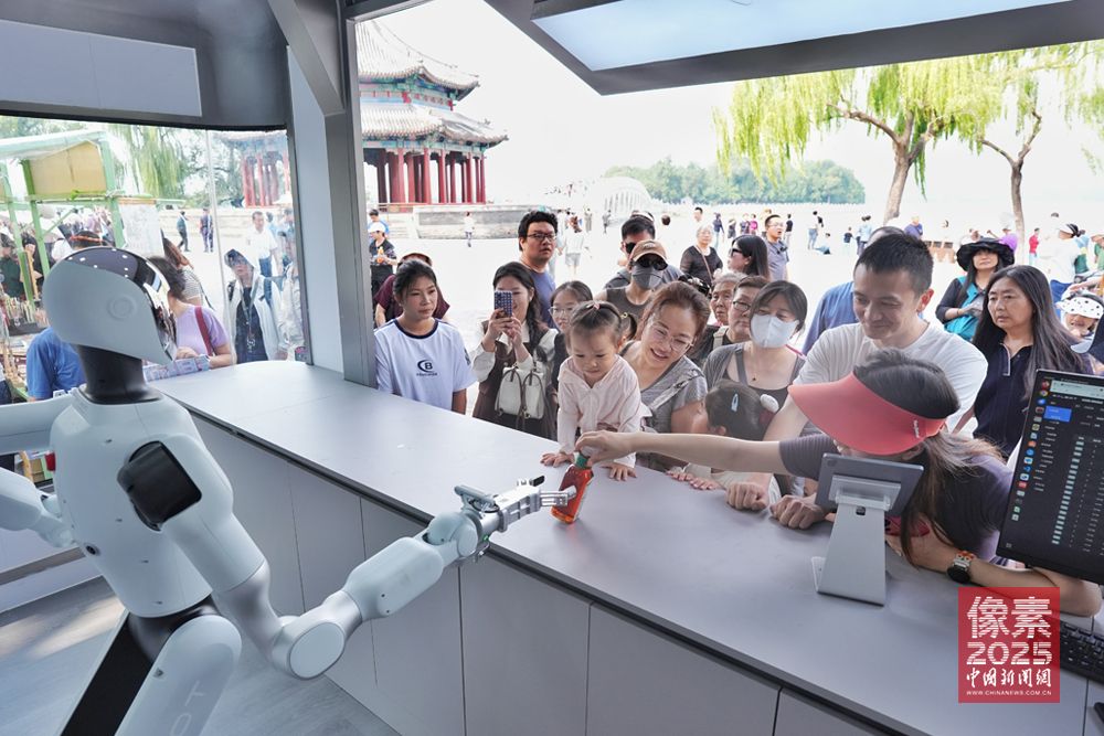 9月13日,在北京颐和园的一家机器人零售店,机器人向游客交付商品。据了解,该零售店由机器人自主提供接待、点单、支付、取货、交付全流程服务,主营饮料和公园文创产品。“人工智能+”已不再只是遥远的前沿科技,机器人正润物细无声地融入人们的日常生活。