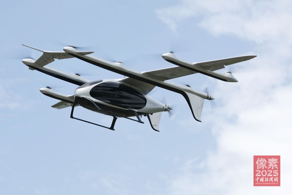随着AI技术加速渗透,中国制造业快速崛起并向具备自主决策能力的“智能体”演进,推动了未来出行方式向立体化、智能化方向跃迁。7月22日,峰飞航空科技在上海向合利创新智能交付全球首架获颁“适航三证”(TC、PC和AC)的吨级以上eVTOL(电动垂直起降)航空器——V2000CG凯瑞鸥,标志着吨级以上eVTOL向低空运营商业化闭环迈出坚实的一步,助推低空经济应用加速落地。据悉,V2000CG凯瑞鸥由峰飞航空自主研发,纯电动力,无人驾驶,最大起飞重量2吨,最大商载400公斤,巡航速度最高200公里每小时,适用航程200公里。图为V2000CG凯瑞鸥进行飞行演示。