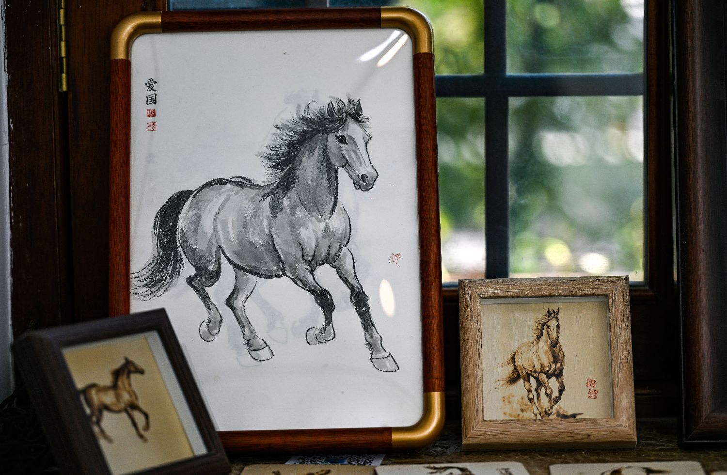 12月29日在天津古文化街“喜迎马年,五代画马人马画艺术展”上拍摄的画作。