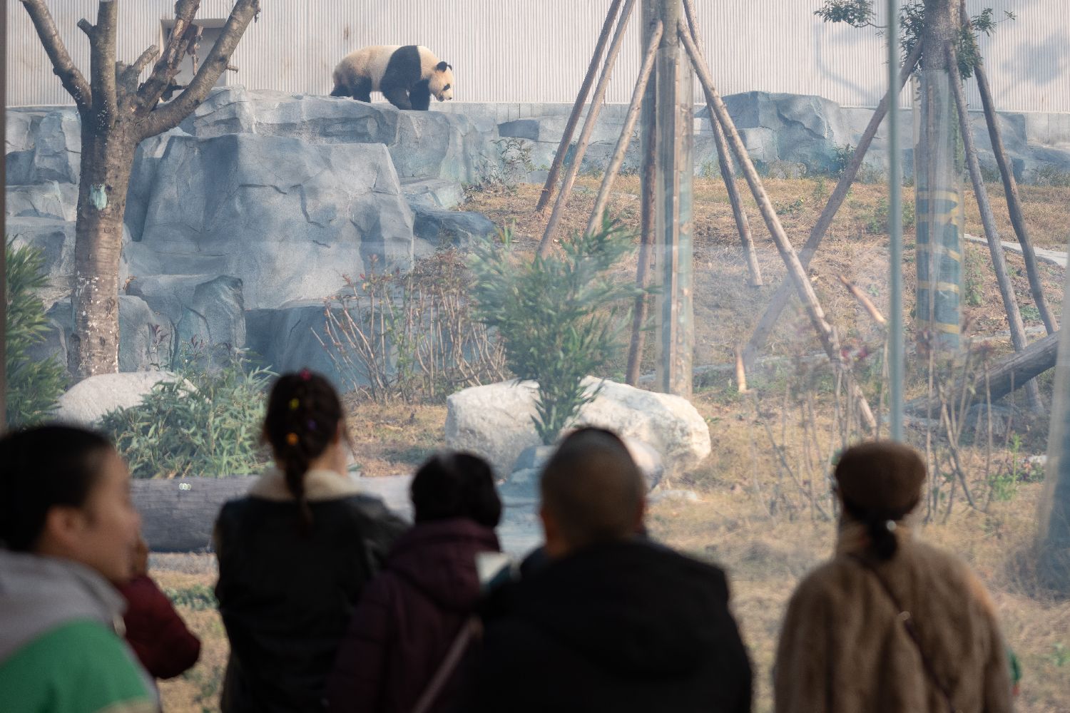 12月29日,游客在中国大熊猫保护研究中心绵阳基地观看大熊猫“冰仔”。