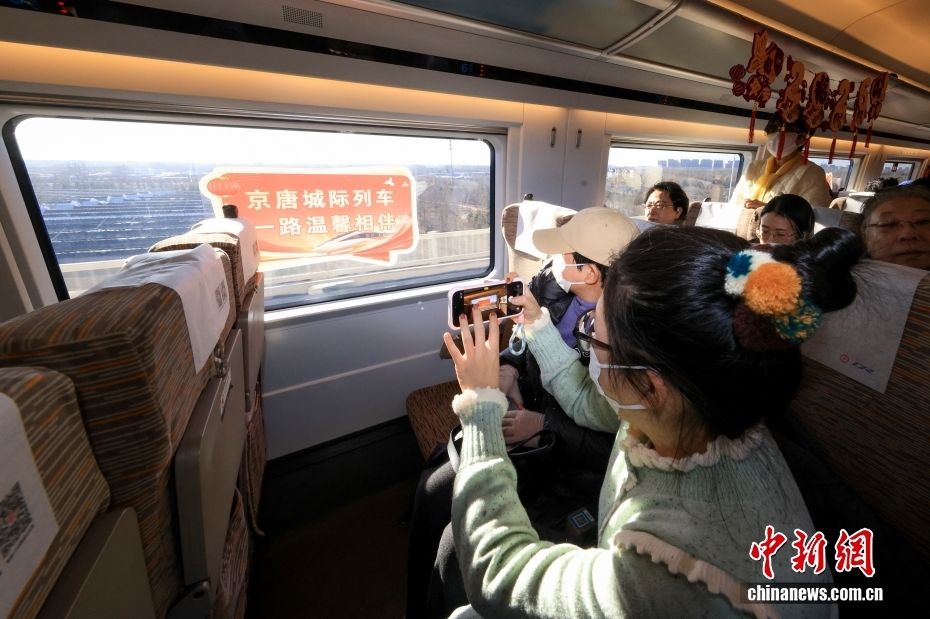 图为2025年12月30日,旅客乘坐从北京通州站首发的京唐城际列车。