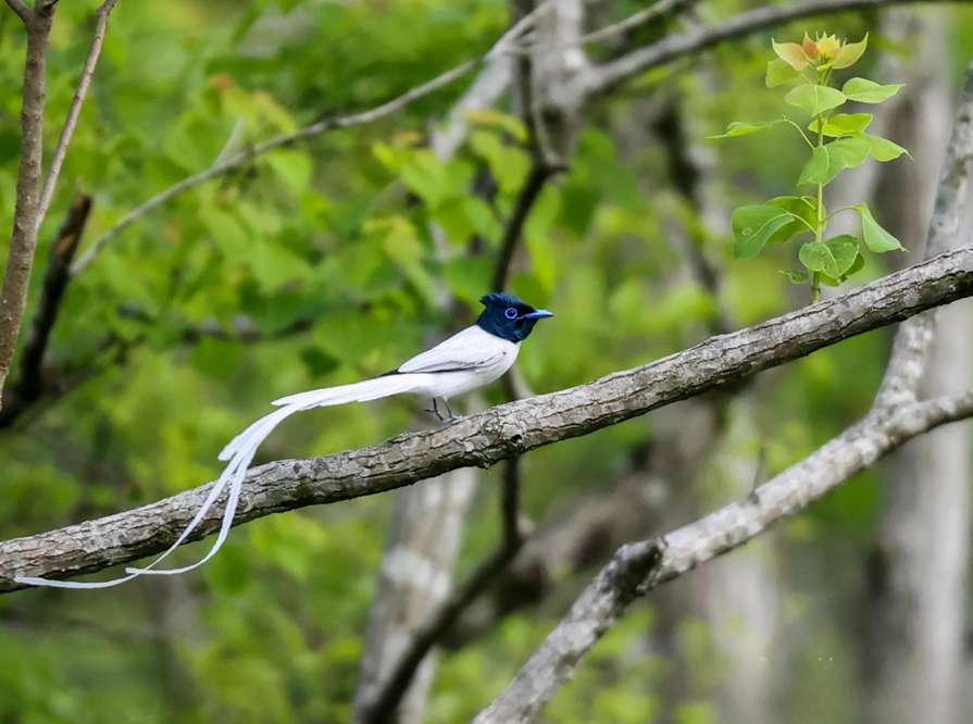 世界级濒危物种寿带鸟鸟现身傍霞村生态湿地。(图片来源:樊成柱 摄)