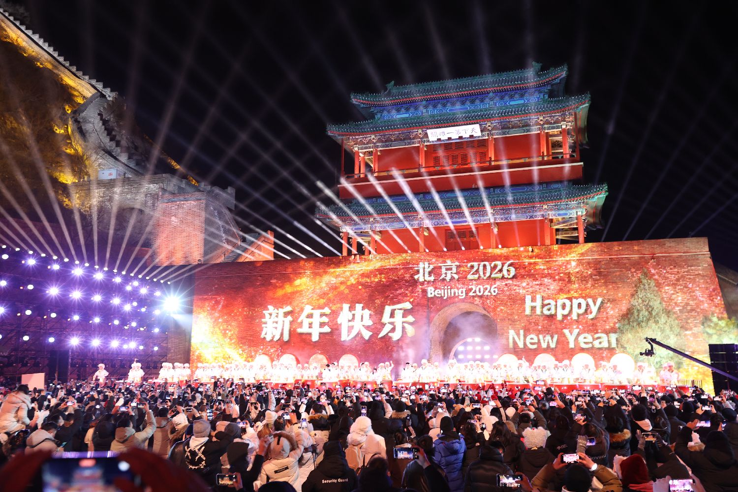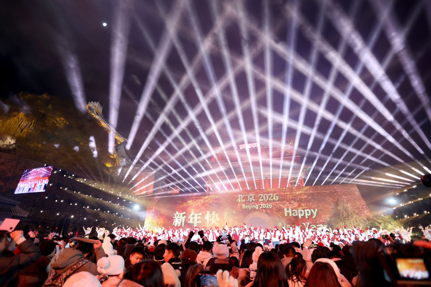 2025年12月31日晚,2026北京新年倒计时活动在北京居庸关长城举行。