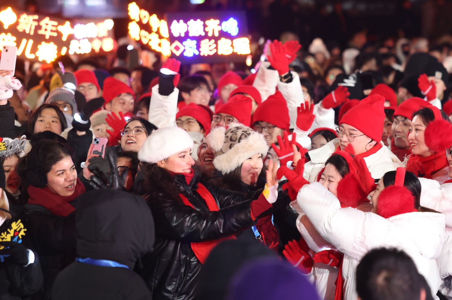 2025年12月31日晚,海内外游客及民众在北京居庸关长城脚下一起跨年。