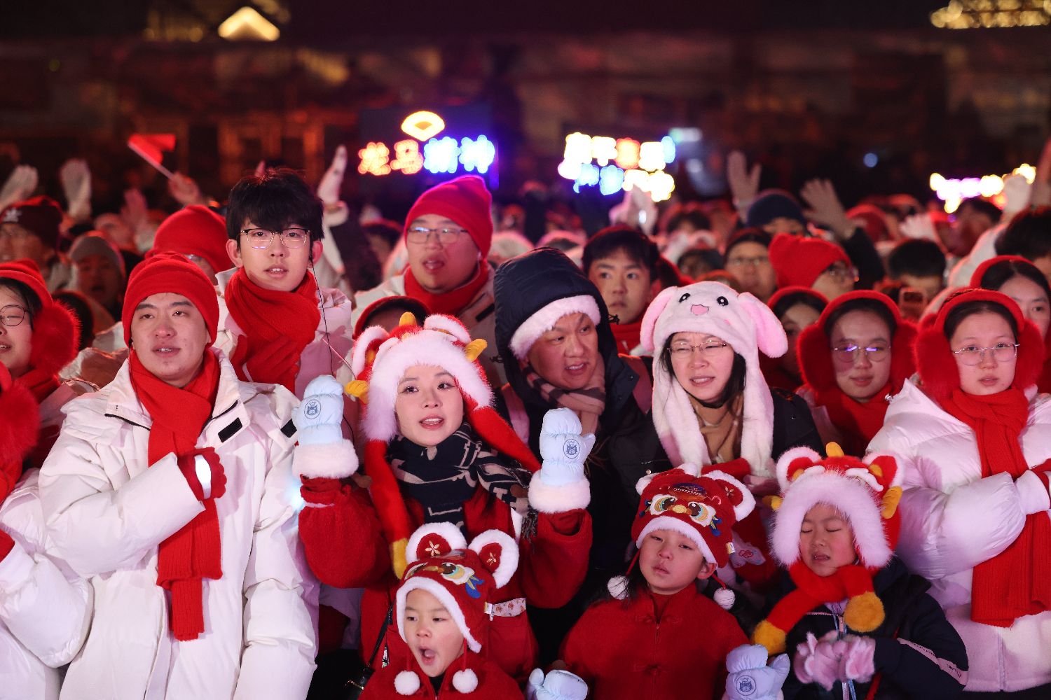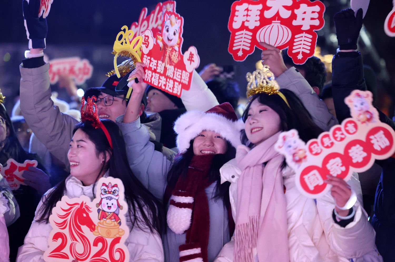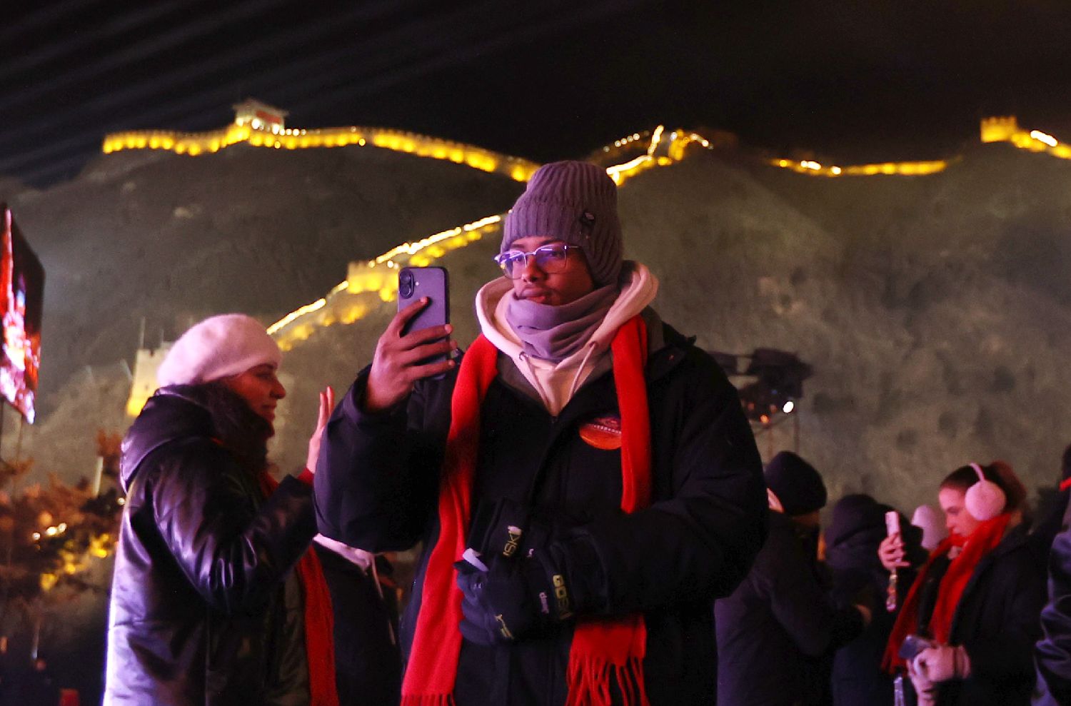 2025年12月31日晚,海内外游客及民众在北京居庸关长城脚下迎接新年。