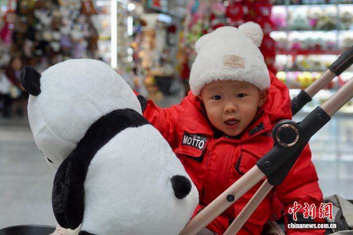 1月1日,一位小朋友展示刚购入的毛绒玩具。(图片来源:中新网)