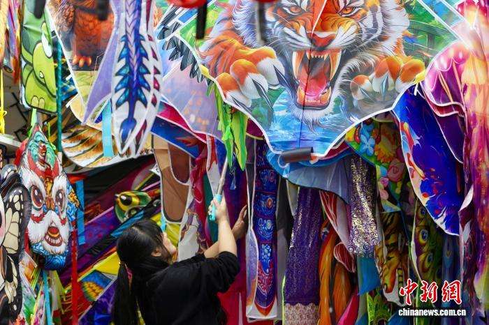 1月1日,商户上架风筝样品。(图片来源:中新网)