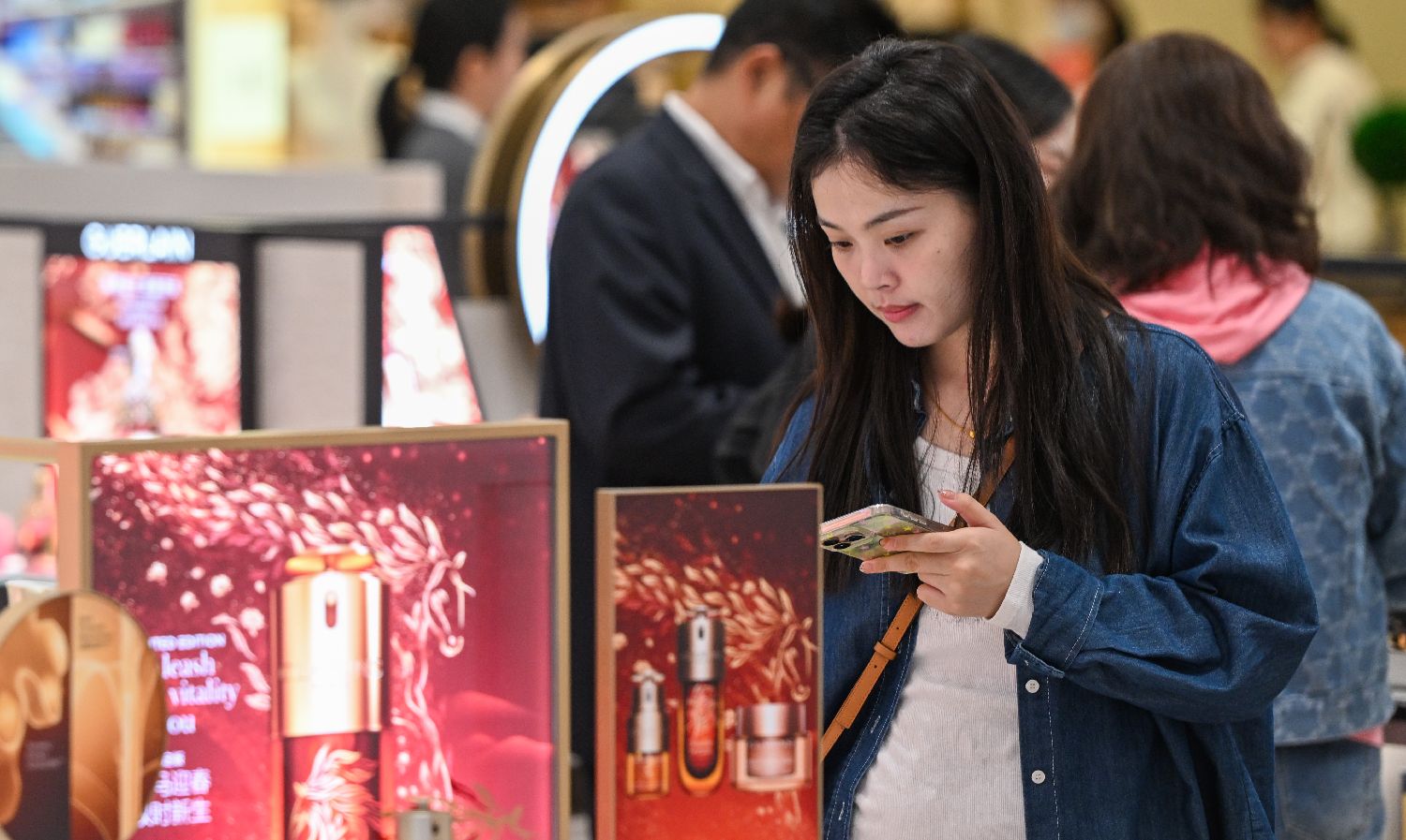 游客在中免集团海口日月广场免税店选购免税商品(1月1日摄)。(图片来源:本文图片均据新华社)