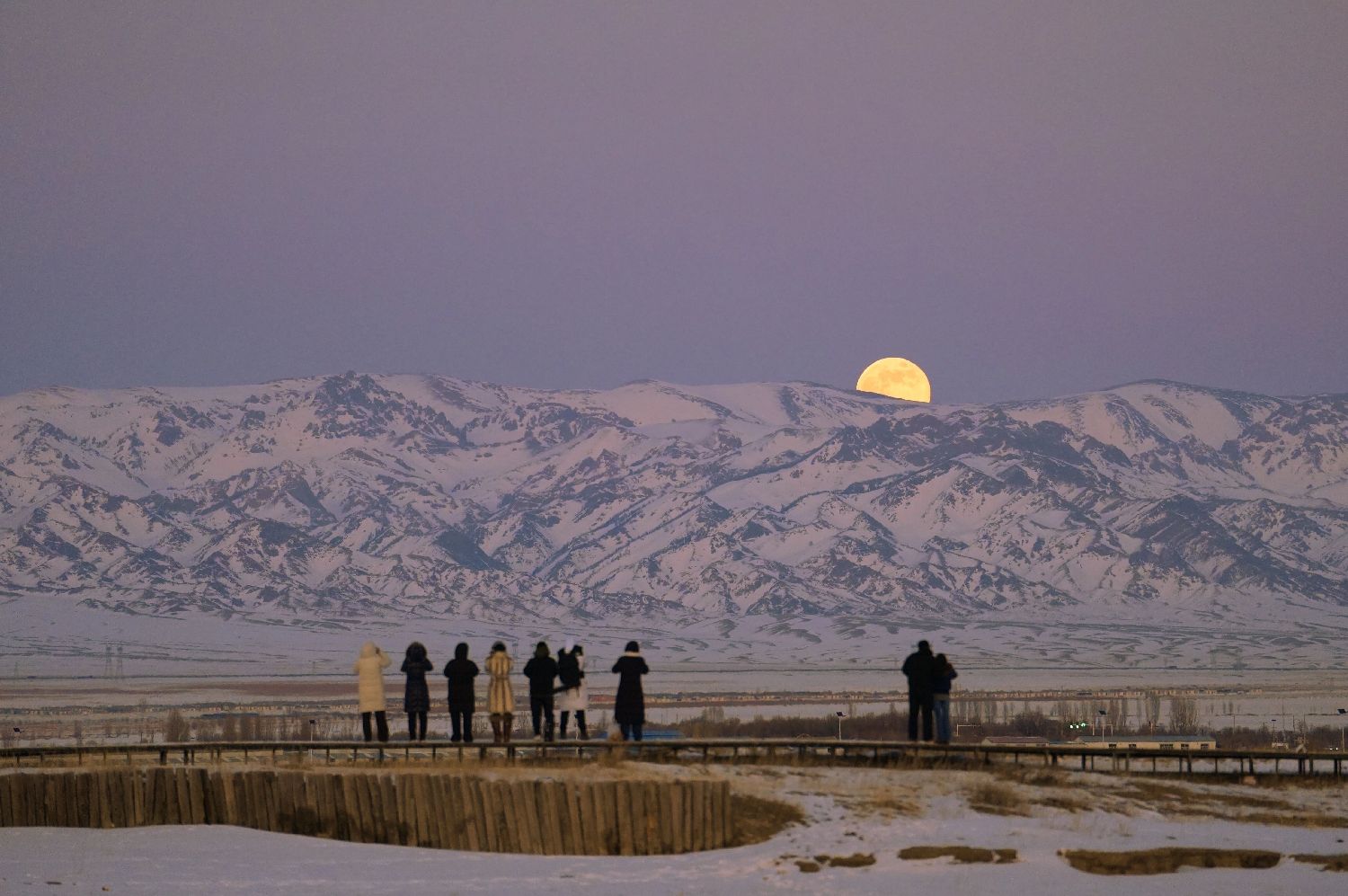 1月3日在新疆哈密巴里坤高家湖拍摄的月亮。