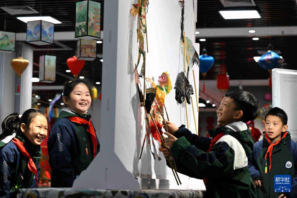 1月6日,小朋友在河北省群众艺术馆“大美河北 欢乐春节”非遗主题展览互动区体验皮影戏。(图片来源:本文图片均据新华社)