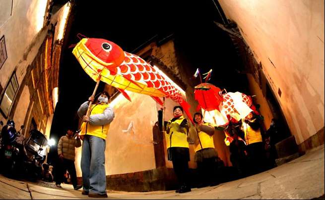 歙县徽州古城,“瞻淇鱼灯”活灵活现。(图片来源:吴建平/摄)