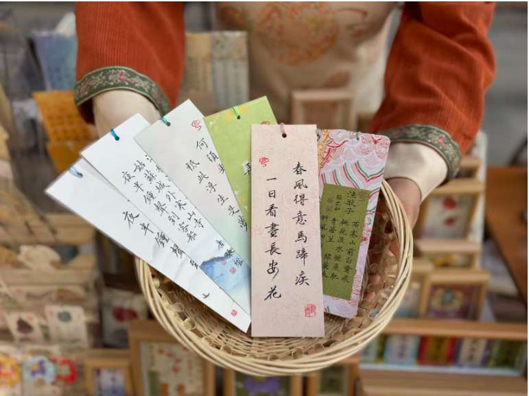 “唐诗不是摆在博物馆的标本,我们希望通过创意找到古诗与今人情感的连接点。”谈及创作唐诗书签的初衷,张钰表示,那些写入书签的诗句往往藏着现代人的瞬间心境,“有人会被‘却话巴山夜雨时’的牵挂触动,也有人会为‘一日看尽长安花’的畅快而来”。