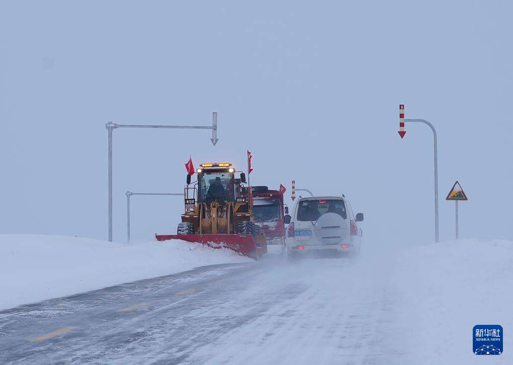 1月13日,新疆阿勒泰公路事业发展中心工作人员驾驶清雪车在辖区公路上除雪。