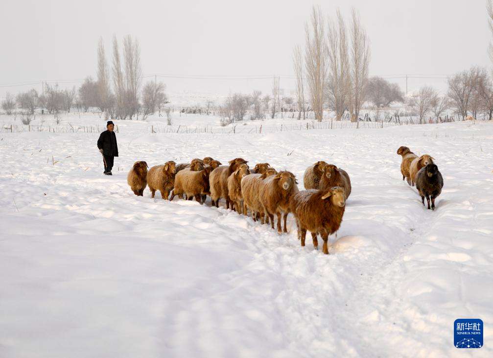 1月13日,牧民在新疆阿勒泰市阿苇滩镇雪都村牧羊。