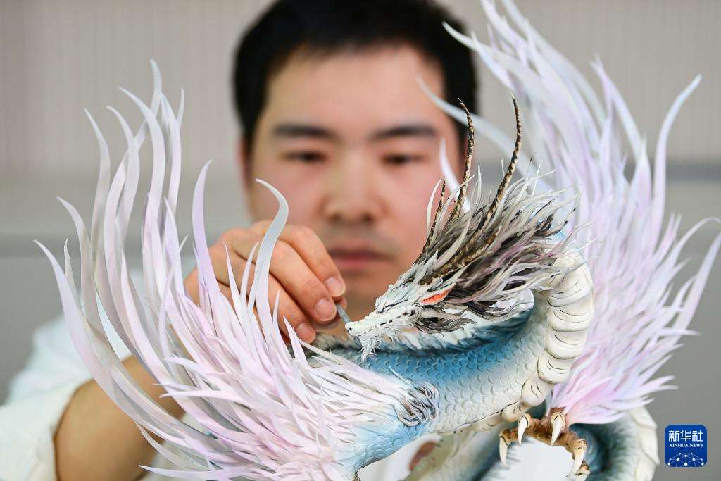 糖艺师张勃在制作糖艺作品《山海经应龙》(1月13日摄)。(图片来源:本文图片均据新华社)