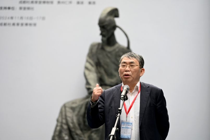 2024年11月,“棋圣”聂卫平在诗圣故居讲棋。(图片来源:中新社)