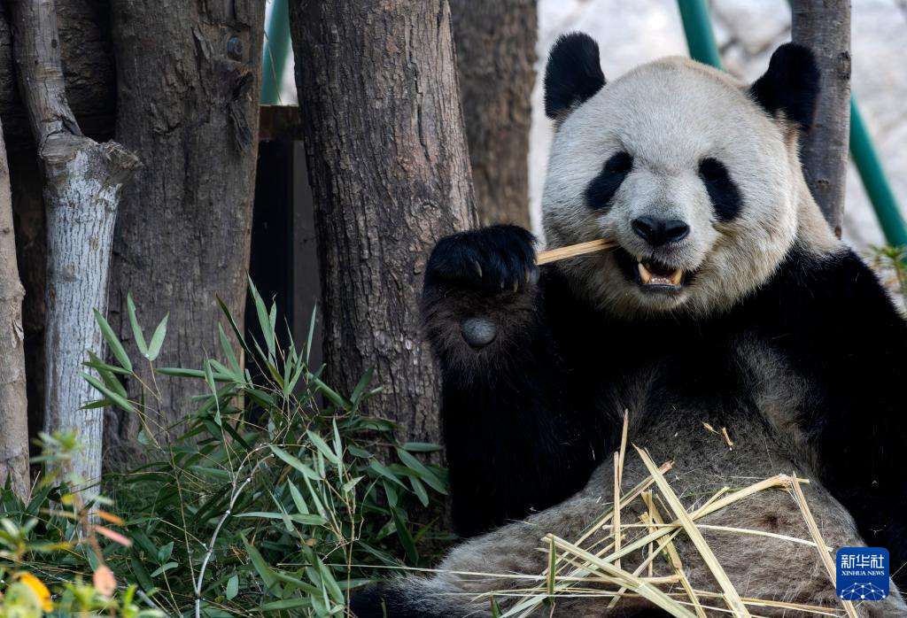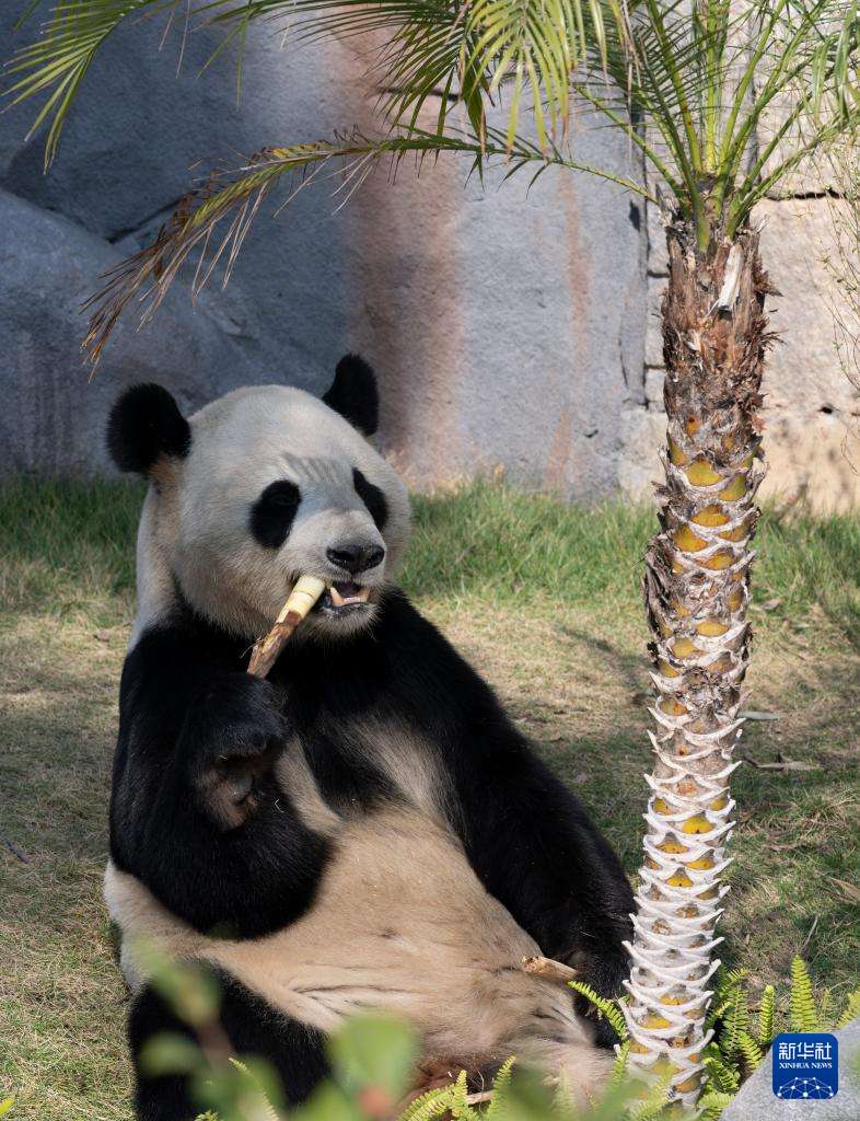 1月17日,大熊猫“荣耀”在户外玩耍。