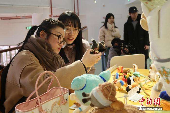 1月21日,游客正在观赏具有马年元素的挂件文创产品。
