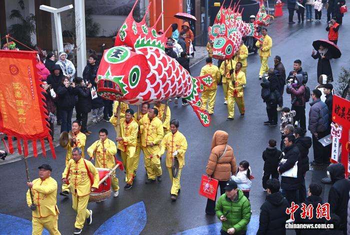 图为黄山汪满田鱼灯穿梭巡游。(图片来源:本文图片均据中新网)