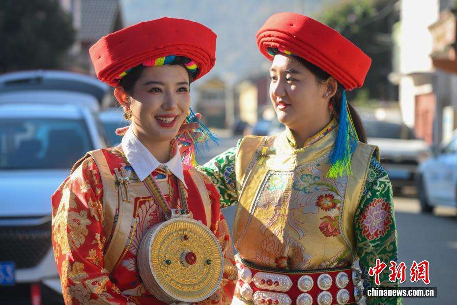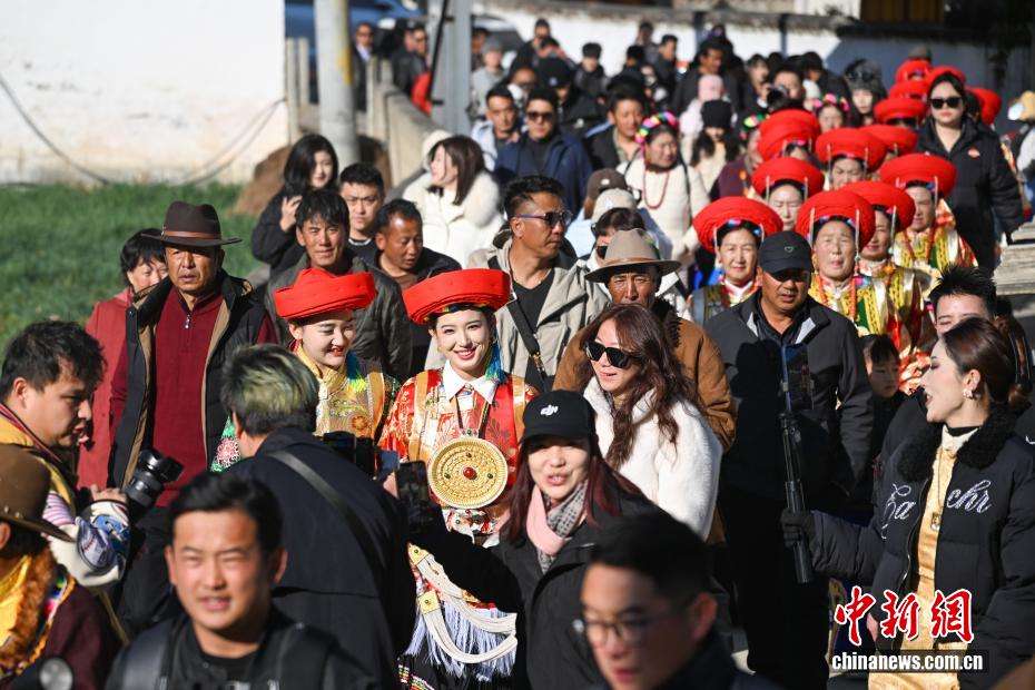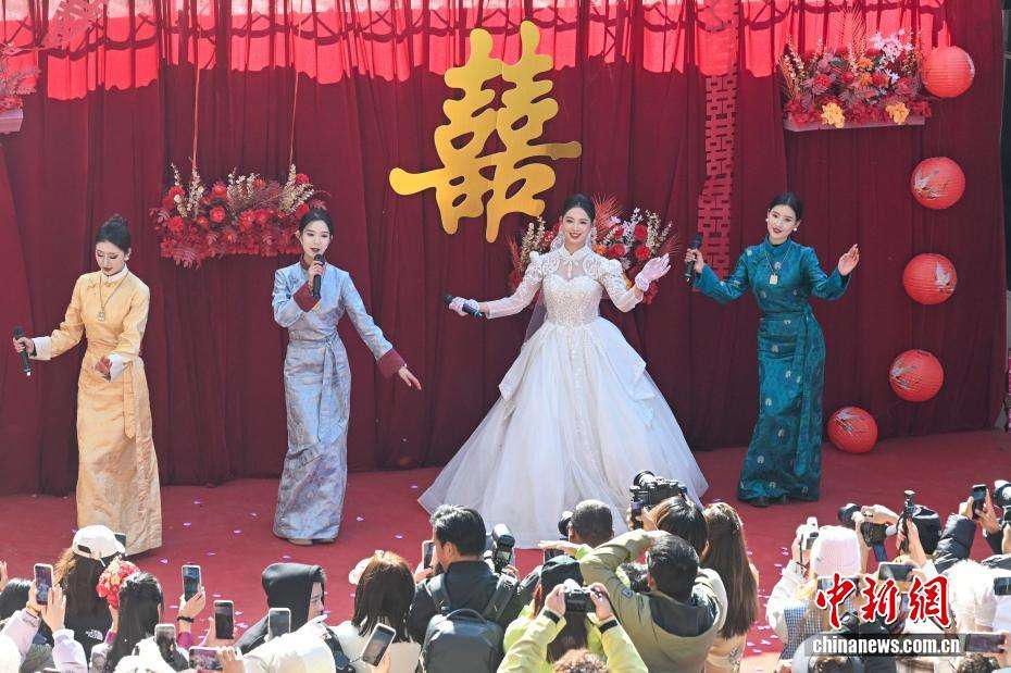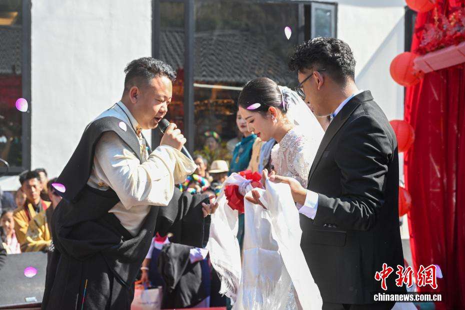1月24日,在雪域高原云南省迪庆藏族自治州香格里拉市仓觉村,全网粉丝量超30万的藏族姑娘扎史永宗和丈夫扎史培楚举行了一场打破线上与线下、地域与时空、传统与现代多重“次元壁”的婚礼。婚礼上,新人穿着传统藏式婚服,按习俗完成接亲、祈福等仪式,亲朋好友围在一起跳锅庄舞。同时,现场摆放着现代风格的婚纱照,用花艺等做装饰,还通过5G网络直播,让没能到场的网友也能身临其境,传统婚俗在现代表达中焕发新生。