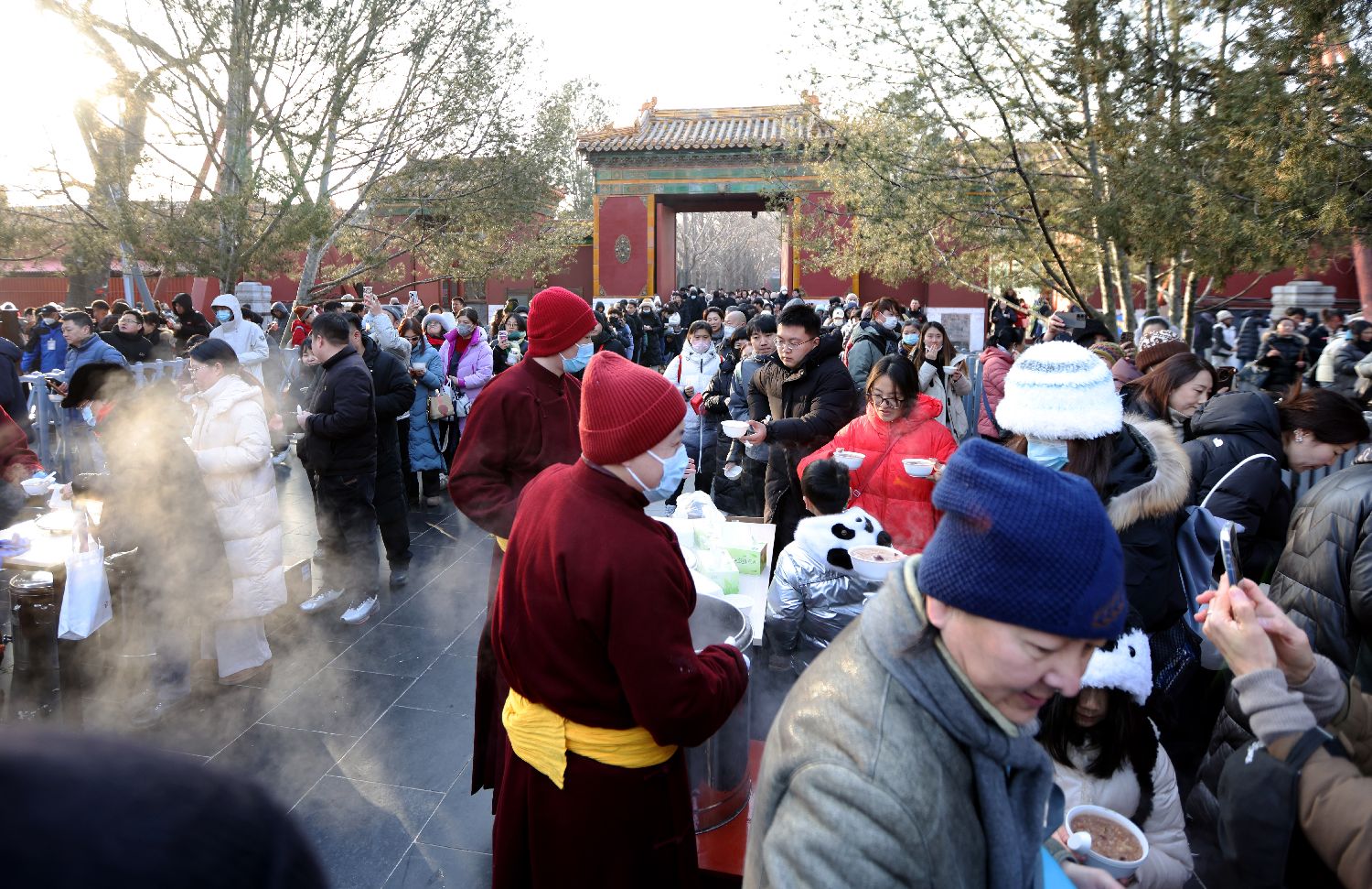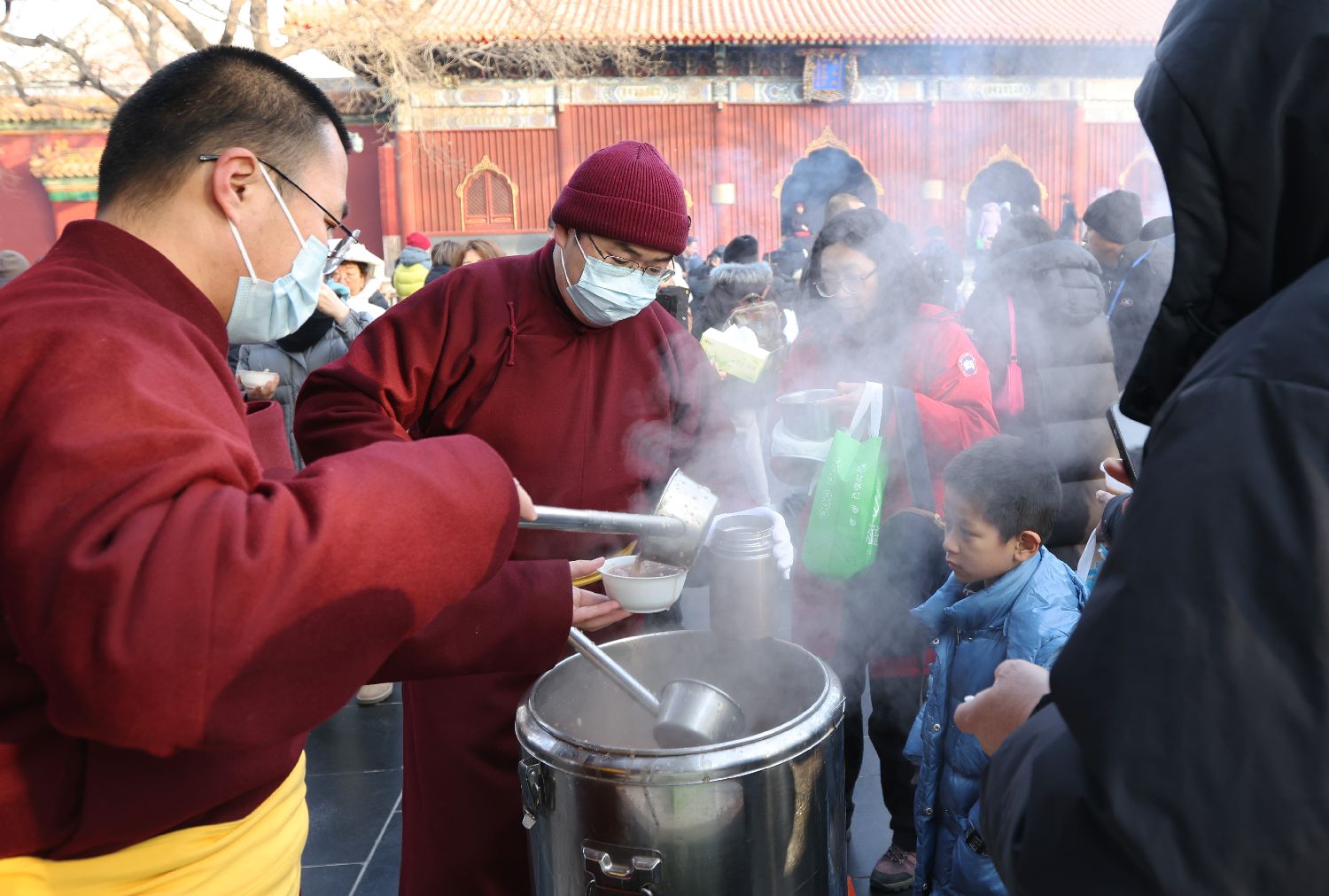 2026年1月26日,中国传统“腊八节”,民众在北京雍和宫喝粥过腊八。