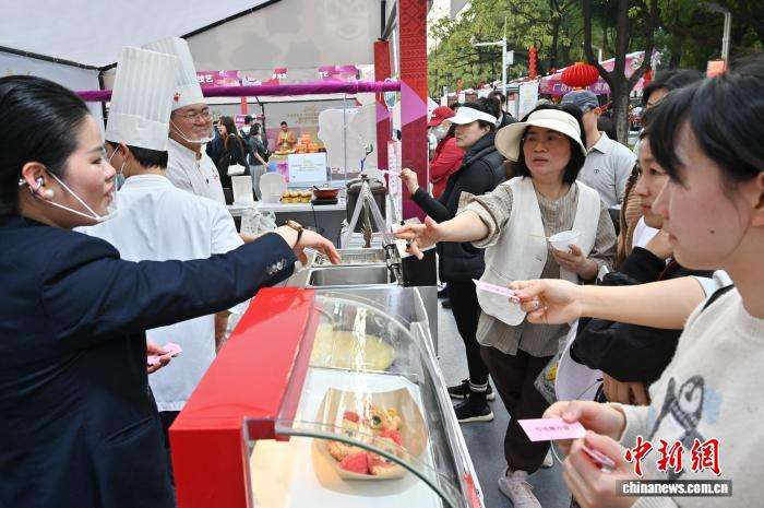 图为广式美食吸引游客购买。(图片来源:中新网)