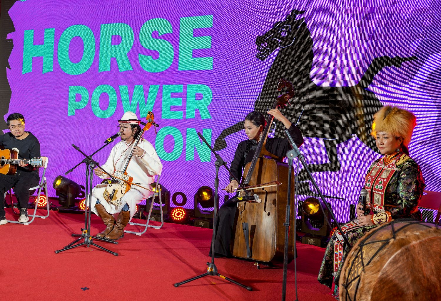 1月26日晚,在甘肃省博物馆一楼大厅,乐队在“马力全开——博物馆启航夜”活动现场演奏《万马奔腾》。